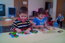 автор: Людмила ГромоваЯ в мозаику игралаИ картинки собирала:Вот квадратик, вот кружочек,Вот голубенький цветочек.Подошел ко мне Сережка:- Поиграть мне дай немножко!- Ладно, братик, поиграй,Но смотри, не растеряй! -
