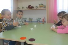 Сегодня в гостях у детей ясельной группы была маленькая Маша. Маша захотела погулять, но идти одной ей было скучно. Поэтому малыши на занятии по лепке «Наша Маша маленькая» слепили для нее из пластилина подружек и надели на них теплые шубки и шапочки. Вылепленные фигурки девочек весело улыбались, потому что им хорошо вместе с Машенькой идти погулять. -