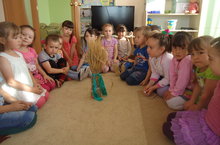 Сегодня на занятии по речевому развитию, дети ясельной группы вместе с воспитателем разыгрывали диалог с курочкой и читали потешки.- Курочка – рябушечка, куда пошла?- На мельницу.- Курочка – рябушечка, зачем пошла?- За водой.- Курочка – рябушечка, кому вода?- Ребяткам.- Курочка – рябушечка, ребята чьи?- Мои! Они пить хотят,На всю улицу кричат!