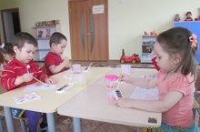 Сегодня к детям ясельной группы пришли в гости много Петрушек с грязными костюмами. Оказывается, они играли на улице с мячами и испачкалиcь. А им так хотелось, прийти в гости чистыми и нарядными. «Помогите нам, дети. Сделайте наши костюмы снова красивыми », - просили Петрушки. Ребята дружно сели за стол и нарисовали для Петрушек новые костюмы. Петрушки очень обрадовались красивым костюмам.Задачи: вызвать у детей интерес к рисованию красками, воспитывать доброе отношение к игровым персонажам и желание помогать им. -