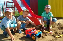 Мы в песочнице играем,Строим домик из песка,Увлеклись, не замечаем,Что носки полны песка.Принесли воды в ведёрке,Чтобы не сломался дом,Красовался на пригорке,Мы его водой польём. -