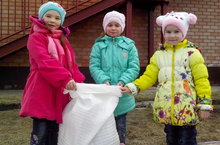 Труд на прогулке: собрать мусор в мешок. Цель: воспитывать желание помогать взрослым, получать удовольствие от выполненной работы.