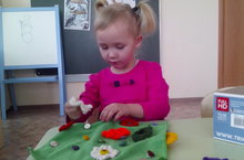 Цель: закрепить знания цветов, развивать мелкие движения рук, тактильные ощущения, зрительное восприятие, сенсорное развитие, привитие интереса к дидактическим играм.