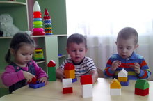 Задачи: познакомить детей со способами постройки домиков. Пополнять и активизировать словарь "высокий" - "низкий", "широкий" - "узкий". Повторять основные цвета красный, синий, зеленый, желтый.