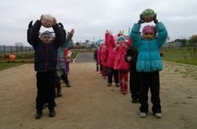 Игра - эстафета с детьми подготовительной группы " Чья команда быстрее?"- развиваем быстроту, ловкость, внимание.