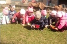 Сегодня во время прогулки дети ясельной группы обращали внимание на весеннее изменение в природе - наблюдали за зеленеющей травой. Они погладили траву, сказали какого она цвета. Какая свежая травка, зелёная!