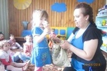Цель: развивать тактильную чувствительность ладоней, кончиков пальцев; приобщать детей к действиям ощупывания предметов, учить доставая, называть их.