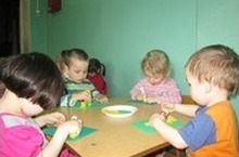 Дети 1 смешанной группы рассматривают свои работы. На занятии по художественному творчеству дети вылепили из пластилина цветы и расположили их на «зеленом лугу» - бумаге зеленого цвета. В работе дети использовали приемы лепки: раскатывание шара и сплющивание шара в диск. Перед занятием дети рассматривали альбом «Цветики - цветочки» и играли в пальчиковую игру «Цветок».