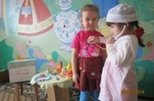1 катнаш төркем балалары “Шифаханә” сюжетлы-рольле уенын уйныйлар. Бу уен аша балаларда табиб һәм шәфкать туташы турында белемнәре ныгытылды. Әлеге хезмәт кешеләренә карата хөрмәт һәм ихтирамлылык сыйфатлары тәрбияләнде.