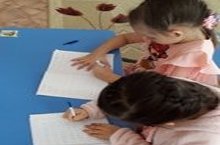 Индивидуальная работа. Учимся писать печатные буквы в тетрадях и составлять из них короткие слова. / Индивидуаль эш. Басма хәрефләрне язарга һәм алардан кыска сүзләр төзәргә өйрәнәбез.