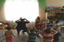 Мало подвижная игра "Ап - ак куян". Дети с удовольствием выполняли ритмические движения, а в конце игры их догоняла Лисичка, которая пыталась скушать деток.
