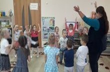 Мәктәпкә әзерлек төркеме балалары "Ак калач" татар халык уенын уйныйлар.