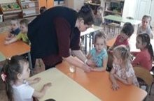 Показ сказки "Колобок" с помощью перчаточного театра. / Кулдан теккән хайваннар белән "Түгәрәк" әкиятен күрсәтү.
