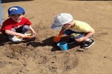 Игры на свежем воздухе в песочнице. / Саф һавада ком өемендә уйнау.
