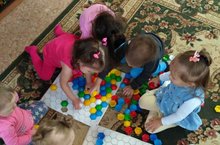 Кечкенәләр төркеме балалары мозаика төзеп, төсләр өйрәнәләр.
