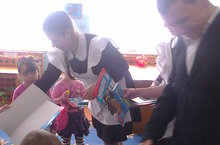 Сегодня учащиеся 10 класса посетили детский сад. Они провели для воспитанников детского сада разные игры и раздавали подарки