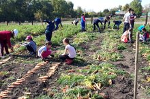 Учащиеся и учителя школы принимали участие в уборке картофеля на пришкольном участке. С задором и весельем справились с поставленной задачей. Молодцы!