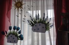 Булмэгэ яз килде балалар белэн без булмэгэ яз керттек . Тэрэзэ пэодэсенэ элу очен язгы чэчэклэр , кояш, кучмэ кошлар ясадык