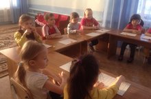 Математик кузаллау дэресе. Зурлар торкемендэ шакмаклы дэфтэр битендэ ориентлашырга ойрэнуне балалар бик телэп узлэштерэлэр. Шул ук вакытта алар санарга да, арифметик мэсьэлэлэр дэ чишэргэ ойрэнэлэр.