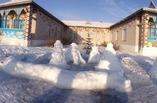 Буген бакча хезмэткэрлэре балалар бакчасы каршына матур итеп кар сыннары ясап куйдылар. Алар арасында кыш бабай,кар кызы,маймыл,дунгыз баласыда бар. Ике якта ике чыршы да калкып чыкты. Хэзер аларны торле тослэргэ буяп куясы гына калды.
