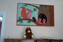 Булмэлэрне зэвык белэн бизэу эше дэвам итэ. Бакча хезмэткэрлэре кулы белэн бик матур тиен рэсеме ясалды,ул рэсем кечкенэлэр торкем булмэсен бизэп тора.