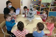 "Кечкенәләр төркемендә кисеп-ябыштыру шөгыле" 08.12.2022 Балаларга квадраттан түгәрәк кисәргә өйрәтүне дәвам итү, чиста-пөтә эшләргә өндәү,киселгән детальләрне дөрес урнаштыруны, игътибарлылыкны үстерү, балаларда бәйрәм хисе тудыру, уртак эштән позитив эмоцияләр уяту максатыннан кечкенәләр төркемендә яңа ел чыршысы бизәдек. Балалар үзләре тудырган эштән кәнәгать калдылар.