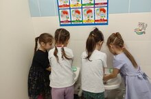 Чиста куллар - озын гомер билгесе. Балаларны кечкенәдән үк кулларны дөрес итеп чиста юарга өйрәтү балалар бакчасының беренче көннәреннән үк башлана.Балалар белән дөрес итеп кул юарга, сабын,сөлге, салфеткаларны куллана белүне ныгыттык.