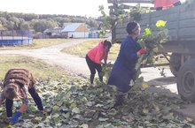 Коелган яфракларны тракторга төяп ташлыйбыз. 26.09.2018