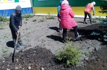 Өмәдә катнаштык. 07.05.2018 5 нче майда коллектив белән өмәдә катнаштык. Балалар бакчасы территориясен, юлларны чистарттык.