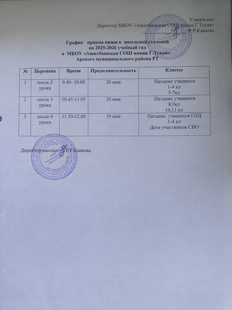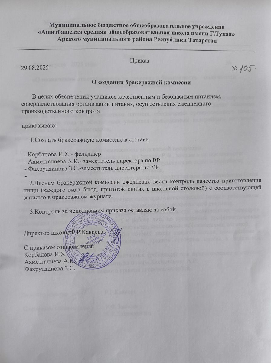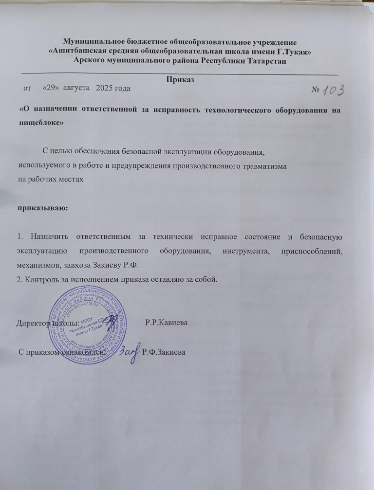 Приказ об организации питания учащихся в ОУ Арского МР в 2025-2026 учебном году