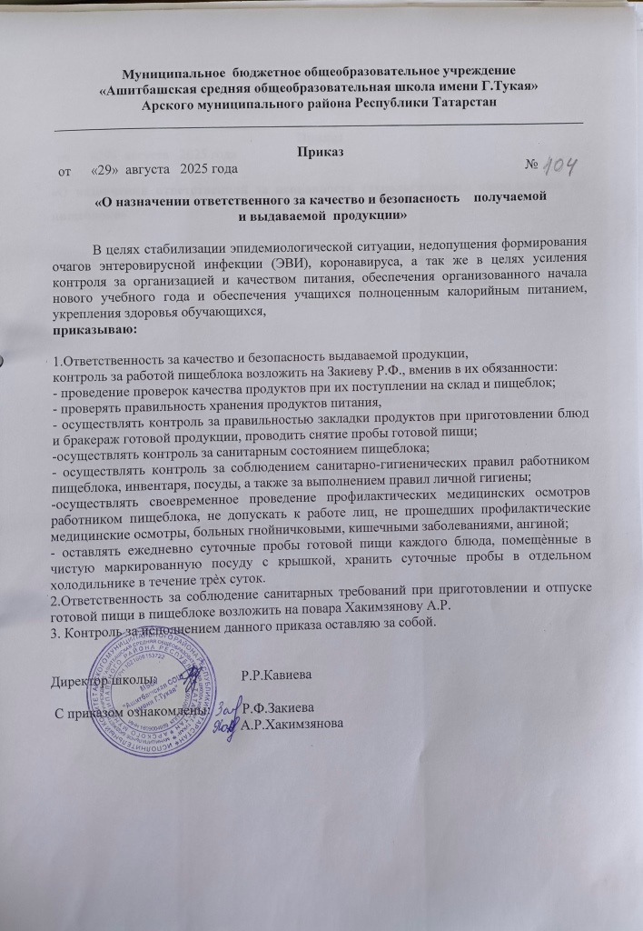 Муниципальное бюджетное общеобразовательное учреждение «Ашитбашская средняя общеобразовательная школа имени Г.Тукая» Арского муниципального района Республики Татарстан/Татарстан Республикасы Арча муниципаль районының "Г. Тукай исемендәге Ашытбаш урта гомуми белем мәктәбе" муниципаль бюджет гомуми белем учреждениесе