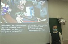 В ходе мероприятия, учащиеся просмотрели видеоролики про терроризм. Особенно ребят поразили, вызвав слёзы на глазах, кадры, сделанные телевизионщиками во время захвата школьников в г. Беслане. Прослушали песню «Жить», исполненную звездами эстрады и выполнили поделку в виде белого голубя. в память погибших в Беслане.