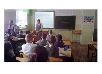 12 нче апрель көнне “Патриот” отрядына Һәм друҗина советына йөрүче укучылар (җитәкчеләре Сираҗиева Н.Ф.) 1 нче “А”,1 нче “Б”.2 нче “Б” сыйныфларында “Галәмдә кеше” исемле сыйныф сәгате уздырдылар.Укучылар темага кагылышлы презентация Һәм мультфильмнар аша галәмгә беренче очучылар хакында белделәр,ике командага бүленеп “Галәмгә кем оча ала?” исемле конкурста катнашып,командалар наклейка белән бүләкләнделәр. Бу очрашу балаларга бик ошады.