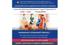 17 мая 2018 года состоится Республиканское родительское интернет-собрание на тему «ВНИМАНИЕ! ОСОБЕННЫЙ РЕБЕНОК...»