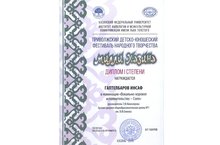 Поздравляем Гаптелбарова Инсафа, ученика 8 «В» класса, занявшего I место в Приволжском детско-юношеском фестивале народного творчества "Милли хәзинә" в номинации «Вокально – хоровое исполнительство - Соло». Руководитель Кинозерова Татьяна Юрьевна.