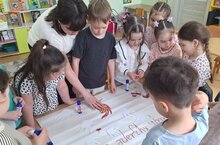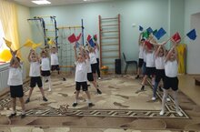 Мәктәпкә әзерлек төркемендә флаглар белән физик культура дәресе узды. Флаглар белән күнегүләр ясау балаларда дәресләргә кызыксынуны арттыра, аларны башкаруның сыйфатын яхшырта, предметларны белергә өйрәтә, дөрес торышка ия булырга ярдәм итә.