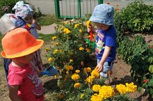 Цель: расширить представление о цветах на клумбе, закрепить умение поливатьцветы. Уточнить с детьми названия цветов на клумбе, знакомить с особенностями строения и отличительными признакамицветов; развивать умение ухаживать за растениями, поливать их; развивать познавательную активность в процессе формирования представлений о цветах на клумбе; воспитывать любовь к растениям, бережное отношение к ним.
