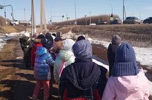 Сегодня в подготовительной группе № 2 была целевая прогулка на тему "Наблюдение за большой дорогой и работой светофора"