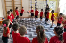 В старшей группе провели физкультурное развлечение "Здоровье - волшебная страна". Праздник проходил в несколько этапов: сначала была проведена разминка с использованием различных видов ходьбы и бега, затем ребята построились в две колонны и провели тренировочку, чтобы не заболеть и наконец отправились в трудный путь в волшебную страну, преодолевая различные препятствия. Дети получили большое удовольствие и массу впечатлений.