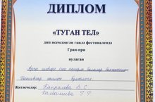 Бүген бакчабызның данын яклап, Бакиевларның тату гаиләсе "Туган тел" дип аталган гаилә фестивалендә катнашты. Бәйгедә аларның кечкенәләр төркеменә йөрүче кызлары Алия һәм мәктәпкә әзерлек төркеменнән Расих уллары үзләренең осталыкларын күрсәтте. Аларга киләчәктә гаилә бәхете һәм тагын да зур уңышлар телибез.