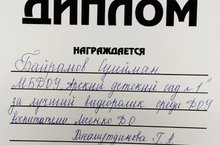 Дипломом Республиканского конкурса рисунков и видеороликов "Буду бдительным на льду и на воде" награжден Байрамов Сулейман. Поздравляем! Так же благодарим воспитателей Лесенко Д.В. и Хисамутдинову Г.А.