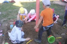 Көзнең матур көнендә зурлар төркеменә йөрүче балалар саф һавада комлыкта уйнадылар.Комнан төрле биналар, йортлар, җир асты юллары төзеделәр.Балаларга саф һавада уйнавы бик ошый.