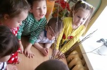 Дети второй младшей группы № 1 каждый день наблюдают за ветками в группе, обращают внимание как набухают почки, как по-тихоньку повляются листочки, знакомятся вербой.