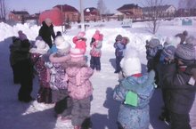 Воспитанники из подготовительной группы радовались солнечной погоде и изучали свойства снега и льда.