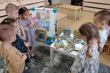 Дөньякүләм китап көне уңаеннан уртанчылар төркеме балалары белән "Минем яраткан китабым" дигән темага әңгәмә үткәрдек. "Әкият китабын танып әйт" уенын уйнадылар. Китапка карата сакчыл булырга кирәклеген аңлаттык.