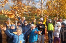 Осень-это шуршащая листва под ногами,золотые кроны деревьев,первые заморозки.Пока ещё погода позволяет долгое время находиться на свежем воздухе, очень полезном для здоровья, мы с детками гуляем на участке.