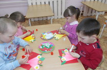 Дети младшей группы своими руками сделали подарок к Дню матери.