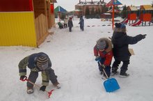 во время прогулки убирали снег на участке и начали собирать снег для снежной постройки. С каким же азартом дети принялись собирать снег для будущей горки!!!!! Затем вмести с детьми поиграли в игру «Санки». Цель: обратить внимание детей на красоту природы. Воспитывать наблюдательность, любознательность, положительное отношение к коллективной трудовой деятельности, здоровому образу жизни. Закреплять умение доводить начатое до конца, радоваться результатам своего труда. Развивать умение соотносить движение с текстом, выполнять инструкцию воспитателя.