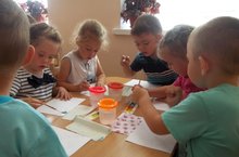 Сегодня дети средней группы познакомились с инструментом, с техникой безопасности. В заключении вырезали красивые флажки и составили общую композицию.