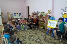 В старшую группу приходили студенты. Они проводили занятия по художественному творчеству и коммуникации. Дети с удовольствием общались со студентами.